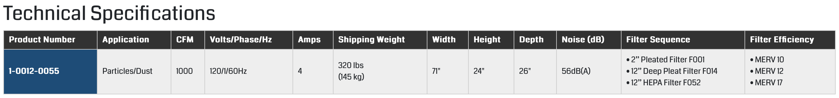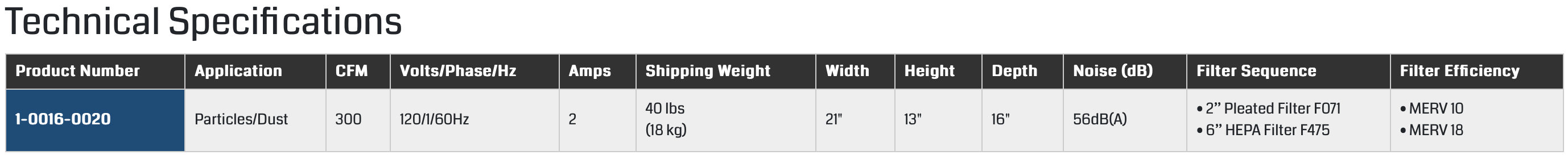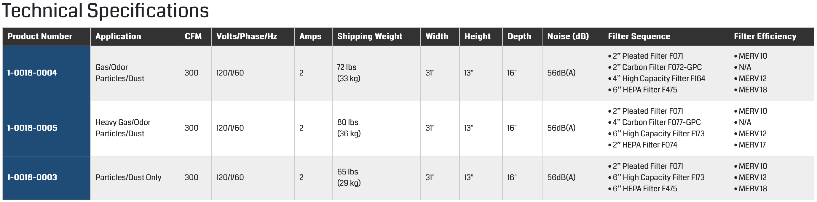 For localized chemical, odor and particle removal. 300 nominal CFM.